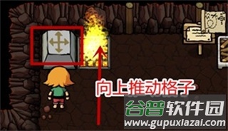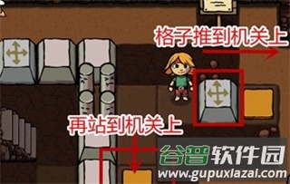 5、在最终洞穴里,将箱子推至旁边的机关上,自己再站上另一个机关,使木柱降下,门打开后即可通关。