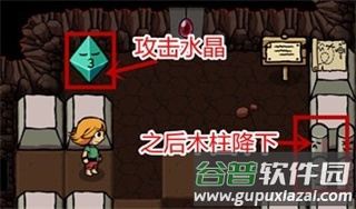 4、使用木棒反复击打两个水晶,中间的四根柱子会缩入地面;走入其中会遭遇野猪,需用木棒将其击败,之后门便会开启。