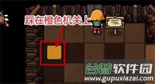 1、初始洞穴的解法较为简单,让角色踏上橙色机关,上方的门便会自动开启。