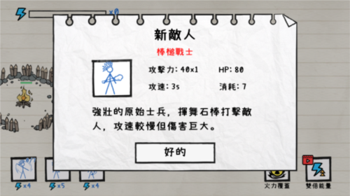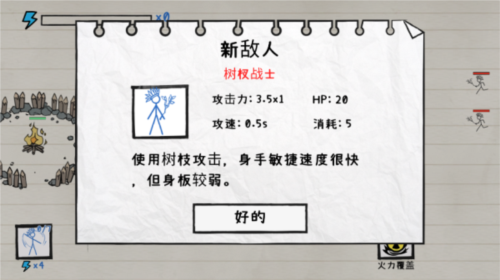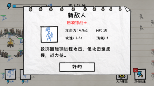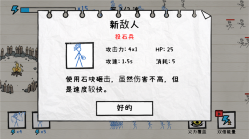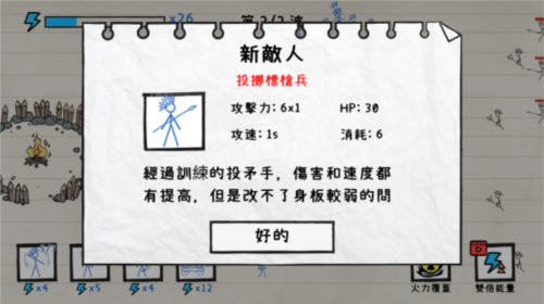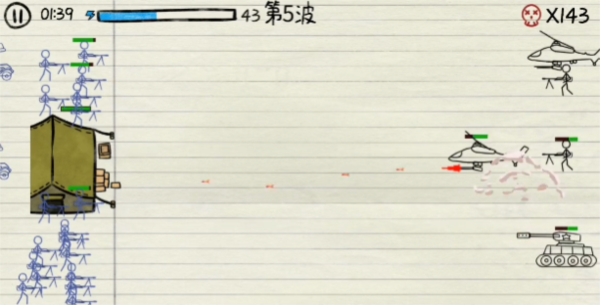 游戏以火柴人为主角,在纸面战场上构建防线抵御敌人进攻,成功防守即可获取奖励。