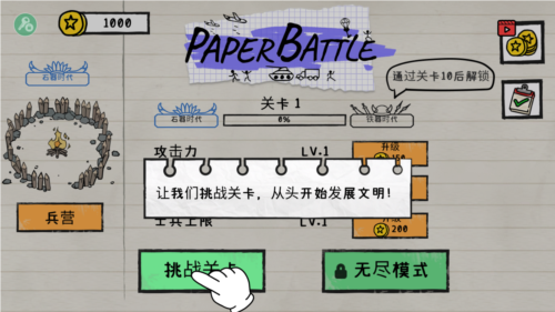 战场设定于一张纸上,形成了独特的视觉风格,画面简洁而富有趣味,玩家需在此施展战术。