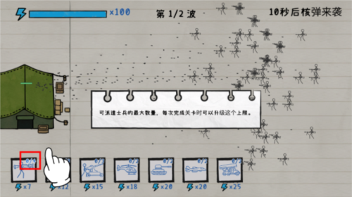 3、界面下方显示召唤士兵所需的能量值,上方则标示了当前可派遣士兵的最大数量上限。