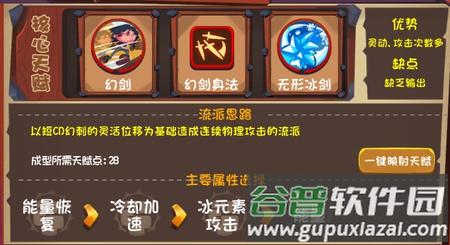 此流派依赖挥出的剑气进行输出,主打冰属性攻击效果。