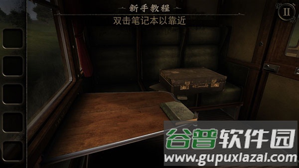 1、游戏开始位于一节车厢内,根据引导滑动屏幕环顾四周;查看完毕后,出现新提示:双击笔记本以靠近查看。