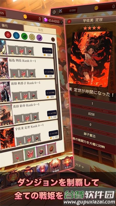 2、你能通过免费扭蛋获得各类武士公主角色。这些角色不仅能加入队伍,还可通过升级与进化等方式提升战力。