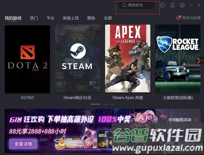 2. 点击“游戏库”,选择或搜索需要加速的游戏;
