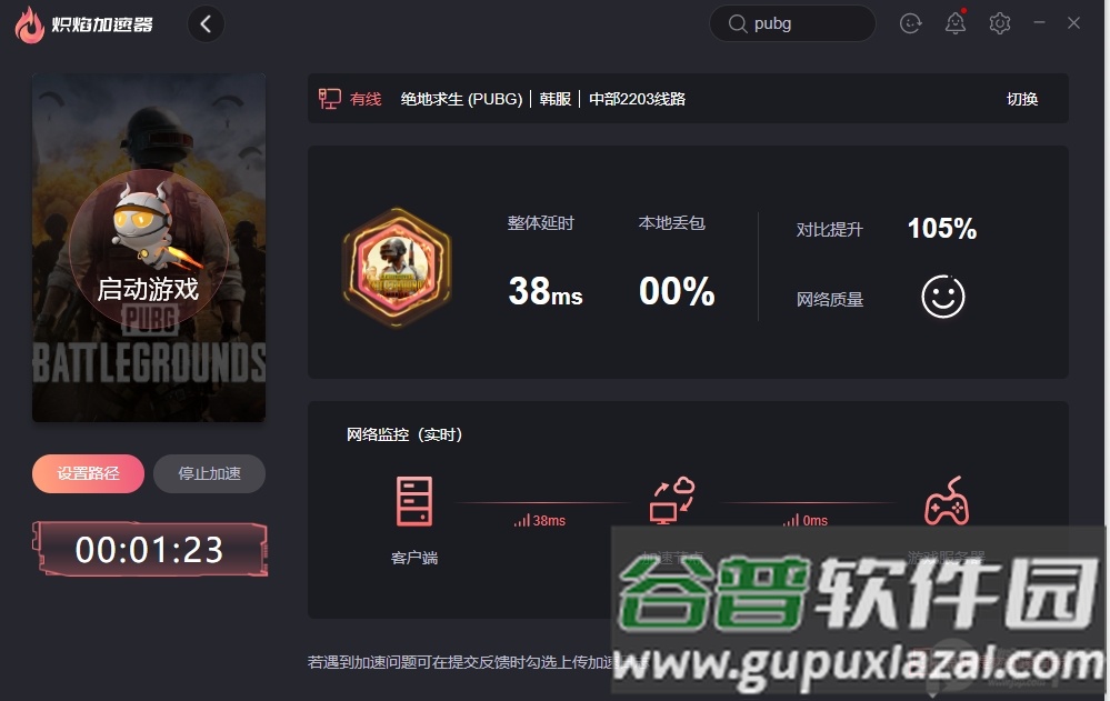第二步:选择目标区服后点击开始加速,进入设置路径界面。