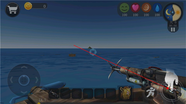 4、长按右侧按钮可控制工具发射钩索,进行捕捞与收集。