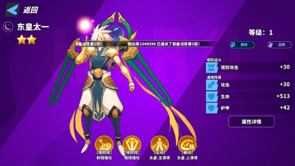 新手刚进入游戏时,英雄储备有限;初期阵容自然是有谁就用谁,抽到谁就上阵谁,尚无挑剔的余地。但游戏初期赠送的东皇太一实力不俗,请不要因其为紫色品质而轻视。
