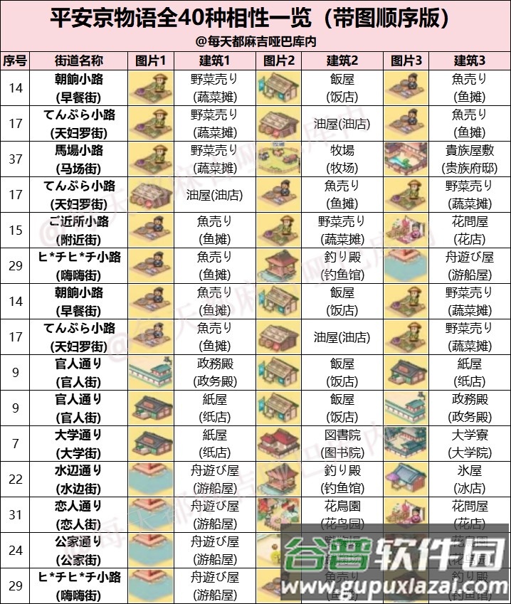 顺序相性表通常只需查看首列即可快速检索。为方便使用,下方附有图片对照,可参照图片查找;翻译名称可能略有出入,但基本可供参考。