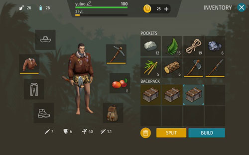 补给箱内有小刀、绳索及一件基础衣物。将它们拖拽至右侧物品栏空格中;点击衣物并选择“EQUIP”即可穿戴。