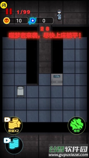 2、进入宿舍后立刻上床睡觉;睡眠期间可以持续积累金币,用于升级宿舍或购买各种防御设备。