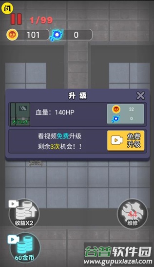 如果大门血量偏低,可以点击维修按钮暂时恢复其耐久度。
