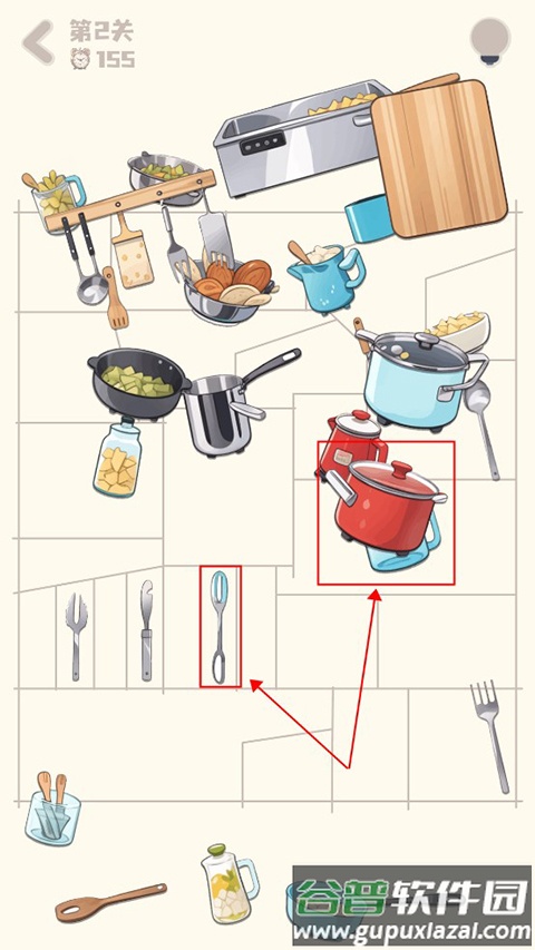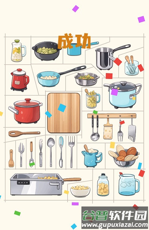 4、当所有物品都整齐放入对应方框后,即可顺利通过当前关卡。