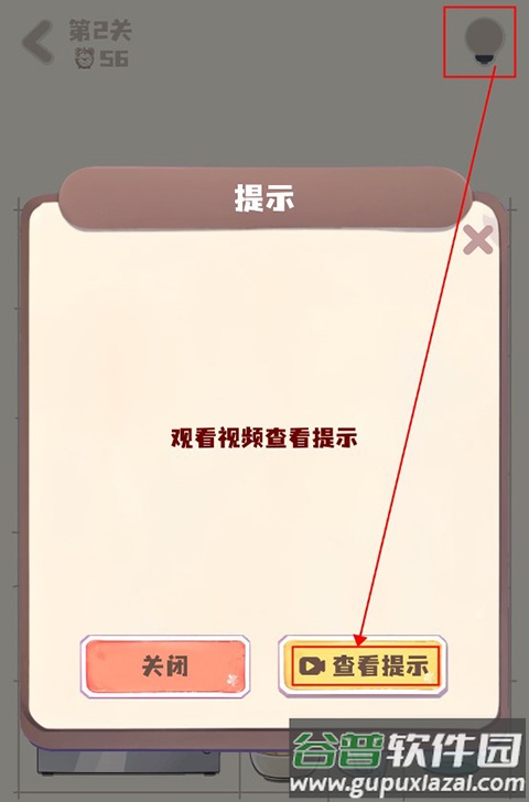 3、如果遇到困难,可以点击右上角的灯泡图标获取提示,观看一段视频后便能得到摆放指引。