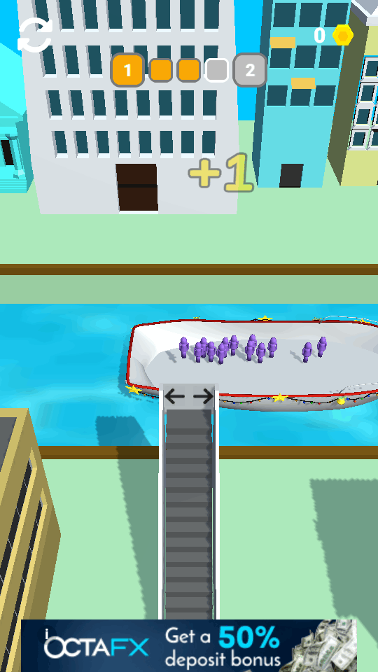 轻触屏幕即可引导人群移动。单纯到达终点并非目标,让最多的人成功登船才能获得高分。因此要挑选合适时机避开车辆,减少人数损失;同时选择高倍率增益道具,扩大队伍规模,从而在结算时赢得更丰厚奖励。