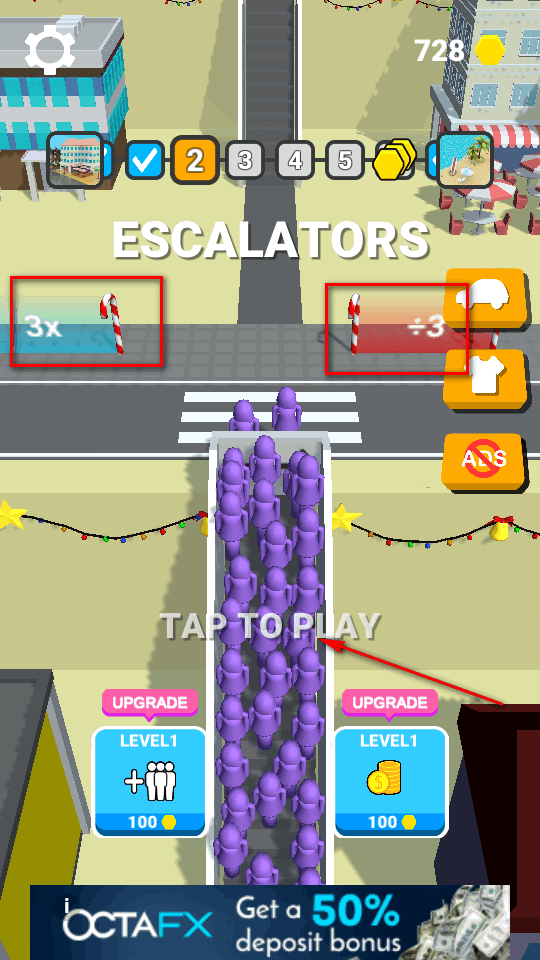 游戏以自动扶梯为背景,融合了io竞技的休闲乐趣。玩法类似经典青蛙过河的升级版,你需要指挥庞大队伍抓住时机横穿道路,最终登上目标船只。沿途不仅有增加人数的增益道具,还有疾驰车辆会冲散人群,阻碍你获得更高分数。