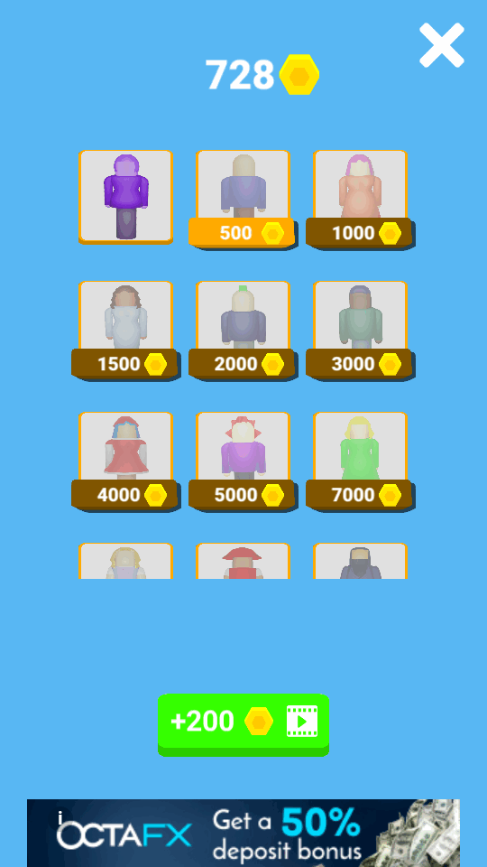 6、积累的金币可用于解锁更多角色皮肤。