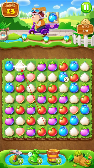 2、善于利用带有特殊效果的蔬菜,它们被消除时会触发大范围清除或其他增益效果,例如图中这种能清除周围大片区域的蔬菜,合理使用它们是通关的关键。