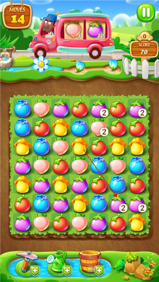 1、游戏核心是按要求采摘客人所需的蔬菜,当多位客人同时出现时,需特别注意分配有限的步数,步数用尽则关卡失败。