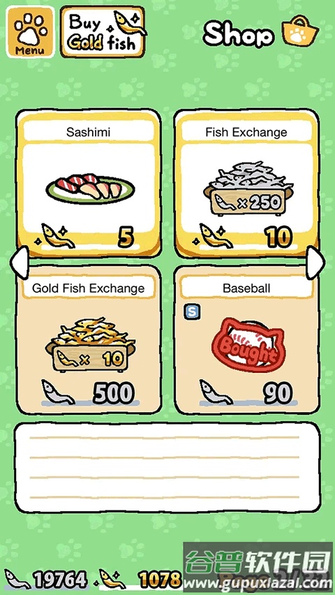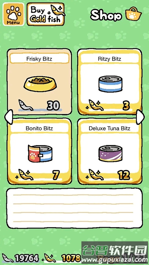 一、商店:使用银鱼干或金鱼干购买猫粮与玩具。