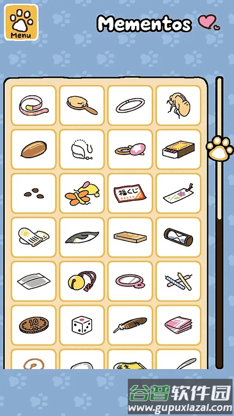 2、礼物清单:就像收集卡片,每次收到礼物时的动画都带来惊喜。游戏会随季节更新,加入新猫咪与新道具。至今仍有两只猫未送我礼物,它们来访较少,获得礼物的几率也低。
