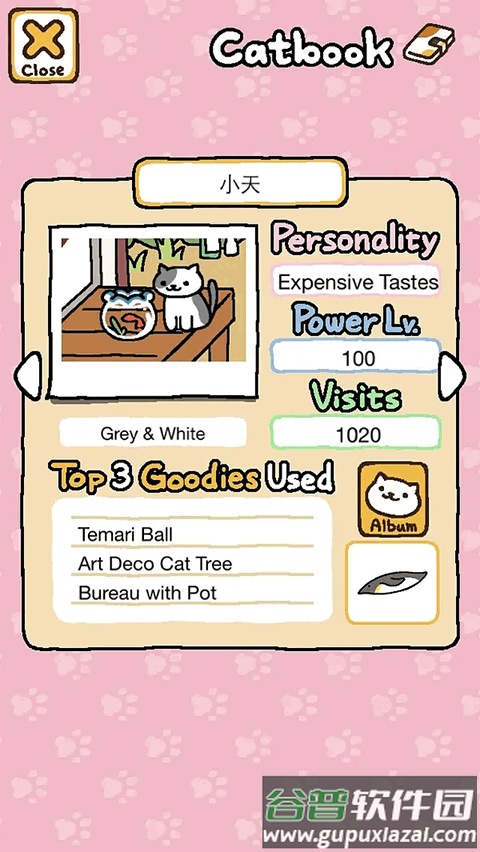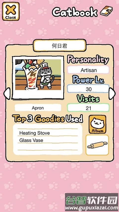 接下来是性格、活力值与到访次数。性格描述能帮助你起更合适的名字;活力值越高,猫咪越容易抢到心爱玩具;到访次数达到50次左右,猫咪通常会赠送礼物,但并非绝对。