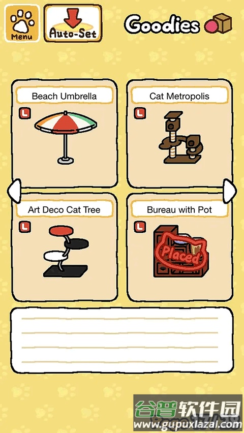 建议:游戏初期可适量购买黄色食盆猫粮,这有助于更快积累鱼干(主要是银鱼干)。