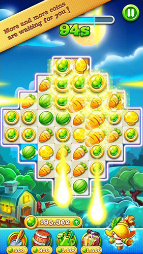 3、整体美术风格温馨可爱,色彩鲜艳的蔬菜水果与华丽的消除特效共同营造出令人愉悦的视觉体验。