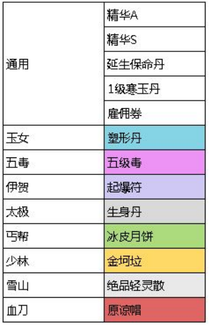 各门派在掌门附近设有兑换处,可使用贡献购买特有道具;