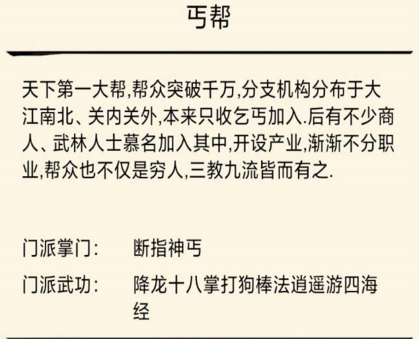 2. 选择丐帮需有长期游戏的准备,该门派前期表现平平,中后期方能展现强大实力;其对充值依赖度较低,适合偏好轻度投入的玩家。