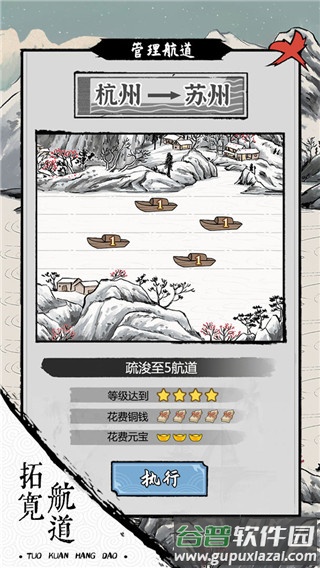 水墨画风勾勒出古代航道的悠远意境,让水上风貌如画卷般在玩家眼前舒展。从无到有组建船队,开辟全新商路,经营发展的乐趣随着时间推移缓缓沉淀。
