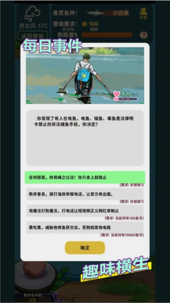 2、游戏提供了多样化的策略路线,无论是依靠个人成长还是借助伙伴力量,玩家都能在过程中揭开谜题。每一次抉择都会影响体验,让玩家自由探索这个充满未知的钓鱼世界。