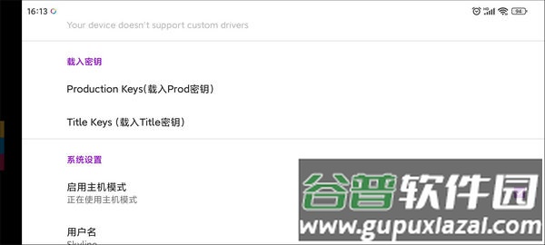 2、获取密钥文件后,打开模拟器的设置界面,滑动到Keys分类;分别点击“Production Keys”和“Title Keys”选项,导航至文件所在文件夹并完成载入。