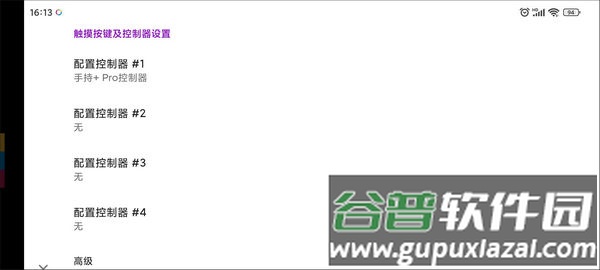 这里是操控设置区域。模拟器支持触屏操作,也允许通过蓝牙连接Pro手柄等外部控制器进行游戏;最多可自定义八组不同的按键配置,适应各类游戏的操作需求。