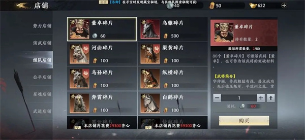组队店铺:全力兑换董卓,坐骑材料用于升阶,合成红色坐骑碎片周期较长,需耐心积累。