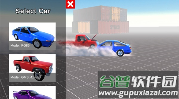 2、点击开始后选择车辆进行模拟,使用方向盘与油门刹车控制汽车,模拟真实的撞车过程。