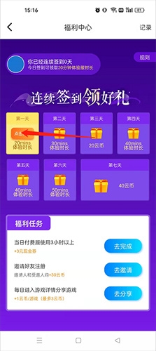 2、通过每日签到可直接获得体验时长;需注意,签到获得的时长仅限于领取当日使用。
