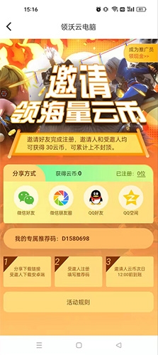 领沃云电脑怎么填邀请码?填写邀请码可帮助用户获得额外云币奖励。