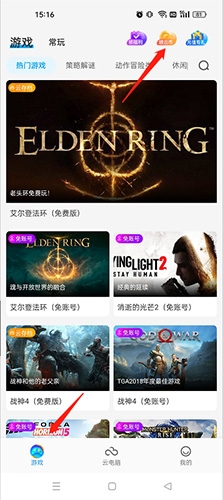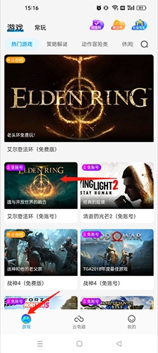 1、在软件内进入“游戏”板块,点击“领云币”任务入口。