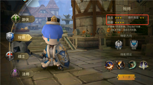 4、牧师职业攻击三星,防御四星,操作二星;这一职业兼顾治疗与坦克职责,手持锤盾,建议有固定队伍的玩家选用,团队效率显著;单人游玩虽生存能力强,但节奏可能稍慢。