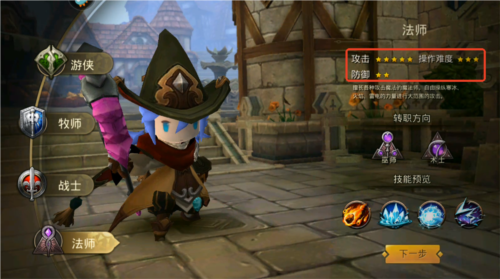 5、法师职业攻击五星,操作三星,防御二星;与游侠同为高输出职业,其转职方向均为远程,操作要求相对略低,属于经典的法系输出选择。