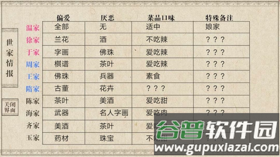 世家偏好图示:隋家喜爱甜食。