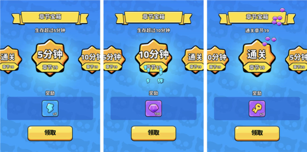 每次通关后记得领取,可获得一把宝箱钥匙;奖励分为五分钟、十分钟与十五分钟三档。