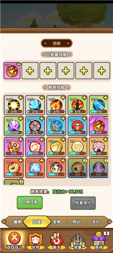 完成主线任务25可解锁商城技能召唤,装备技能将为小怪兽攻击属性带来质变,闯关过程中可释放技能对敌人造成强力打击,不同技能伤害效果各异,开启自动施法即可自动释放技能加速过关;