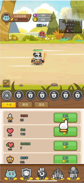 开局后你将扮演功夫熊对抗入侵怪物,通过不断提升属性突破关卡。