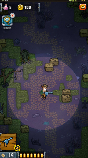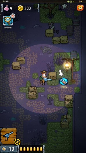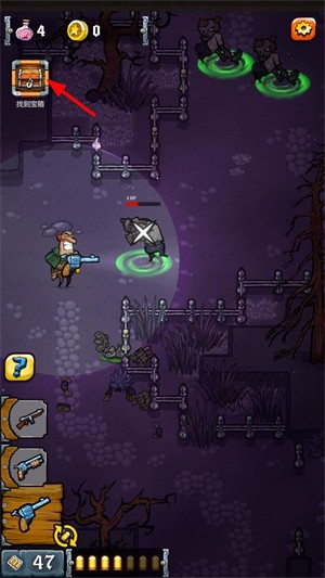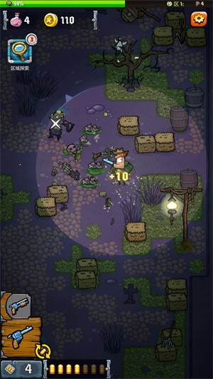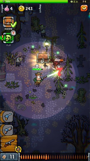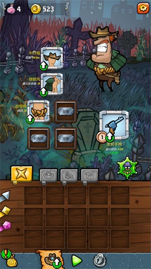 3、使用可靠的六发左轮消灭僵尸,收集金币、脑髓精华与积分;