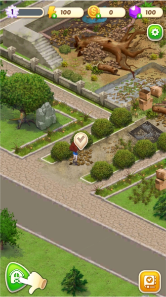 1、安装并启动游戏后,跟随引导熟悉基本操作,清理花园中的初始杂物;