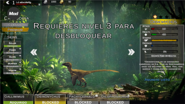 游戏提供了十一种形态各异的恐龙,例如三角龙、似鸡龙和恐鸟等,供你选择操控;通过积累经验值可以逐步解锁全新物种,也能利用收集到的金币或白银直接获取,整个过程没有广告干扰。你的世界里遍布着由AI控制的恐龙,它们会定期刷新出现。提升等级的主要途径是捕猎其他生物或广泛探索地图。金币和白银则可通过完成特定任务、参与小游戏等方式收集。你的终极目标就是征服这片古老大陆,登上食物链的顶端。