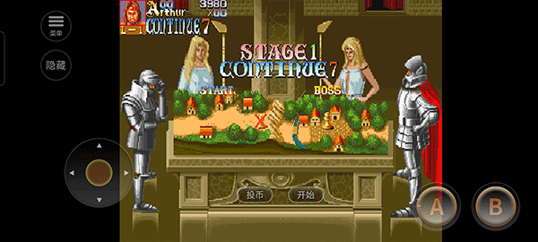 3、开始关卡挑战,左侧虚拟摇杆控制移动,右侧A键发动攻击,B键执行跳跃动作。